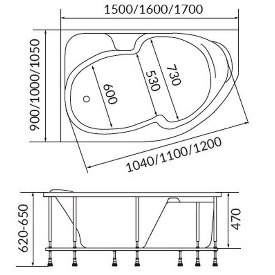 Акриловая ванна 1MarKa Diana 170 x 90 см, асимметричная, цвет белый, левая/правая, 01ди1790л/р