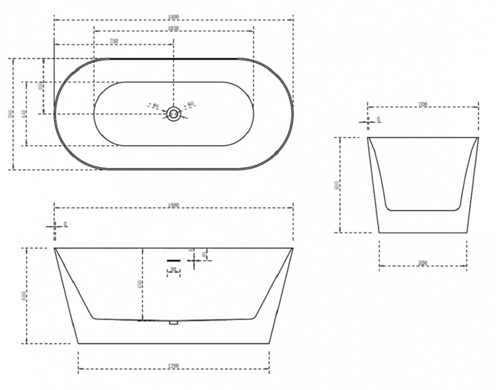 Акриловая ванна Abber AB9222-1.5 150 х 70 см, без гидромассажа