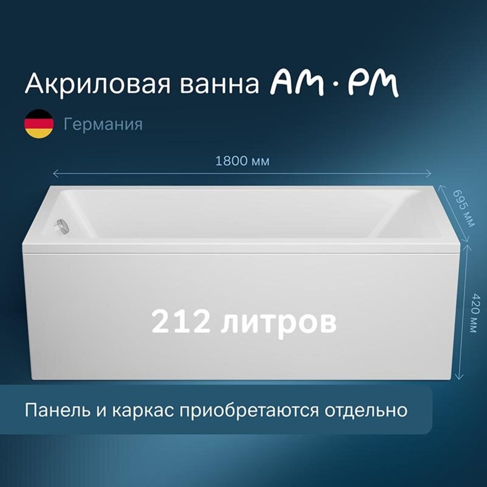 Акриловая ванна Am.Pm Gem 180 x 70 см, белый, W93A-180-070W-A