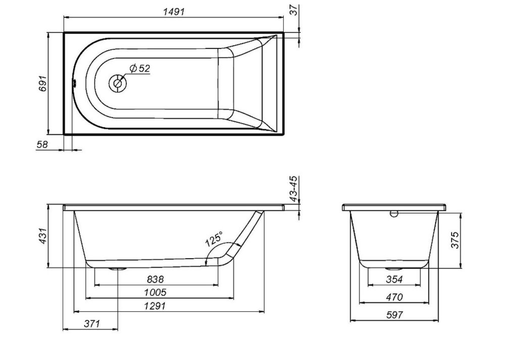 - Размеры (ДхШ): 150х70 см. Глубина чаши: 44,5 см.