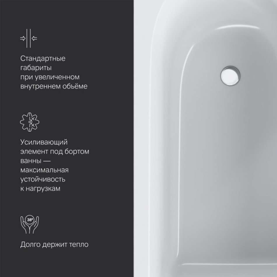 Улучшенная технология производства: благодаря использованию многопрофильного композитного материала полиуретана и усиленному борту ванна на 30% прочнее стандартного армирования.