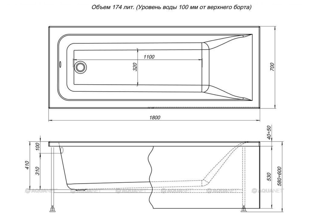 Акриловая ванна Aquanet Bright 180x70 создана с учетом растущего спроса на ванны простой прямоугольной формы в популярных размерах. Это модель с прямыми бортами и пологой спинкой, где соблюден идеальный угол для комфортного нахождения в ванне. Спинка плавно перетекает в бортик, поэтому релакс гарантирован даже без использования подголовника. Все линии ванны подчинены строгим законам эргономики. В современных условиях ширина ванны 70 см при длине 180 см - это наиболее востребованные габариты, так как прекрасно вписываются в стандартную планировку современных ванных комнат. Чаша в этой ванне устроена таким образом, что для обозначенных размеров в ней достигнут максимально возможный внутренний объем, а именно 174 литра, и это при комфортной глубине в 410 мм от слива ванны до борта.