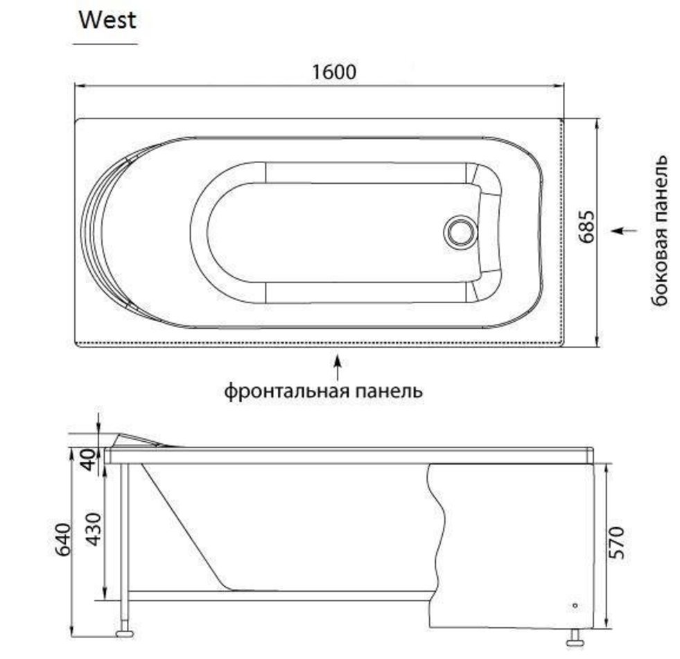 Акриловая ванна Aquanet West 160x70 — прекрасный выбор модели эконом-класса среднего размера. На первый взгляд она напоминает своей формой модели Nord. Тот же эргономичный силуэт с рассчитанным углом наклона задней стенки, которая позволяет удобно расположиться в ней даже человеку высокого роста. Тот же специальный выступ для подголовника, те же компактные площадки по углам ванны, которые можно приспособить под размещение банных принадлежностей. И та же белоснежная поверхность сантехакрила, которая роднит все ванны Aquanet. И все же разница есть. Она дешевле. Причем, на низкую цену повлияли вполне объективные вещи. Так, для изготовления ванны West использован акрил толщиной 4 мм, что всего на 1 мм меньше, чем остальные модели. Также ее глубина на 5 см меньше, чем у ближайших родственников из коллекции Nord. ВНИМАНИЕ! Фронтальная панель, каркас или ножки (на выбор), а также слив-перелив в стоимость не входят и заказываются дополнительно из числа предложенных. Поставьте галочки около необходимого оборудования. Комплектация: