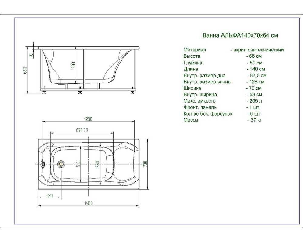 - Внутр. размер ванны 128 см