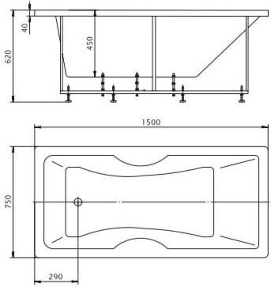 Акриловая ванна Aquatek Феникс 150 х 75 см, без фронтального экрана, FEN150-0000031