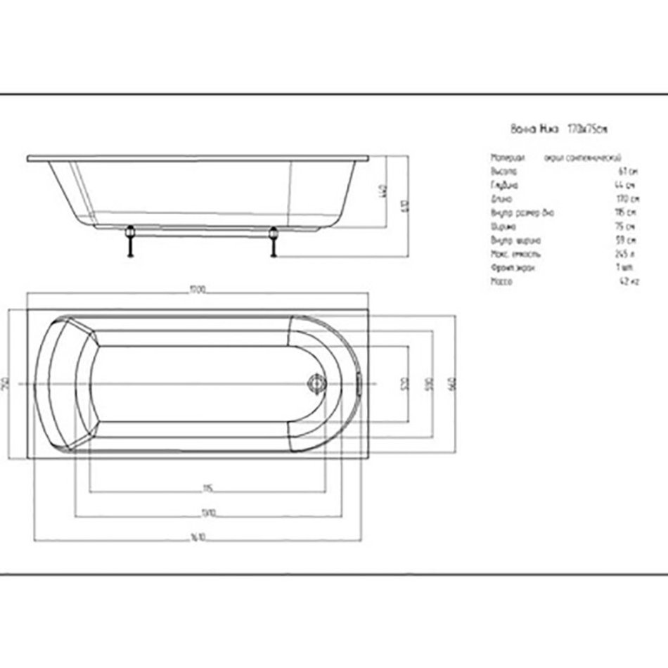 Акриловая ванна Aquatek Ника, 170 x 75 см, цвет белый, NIK170-0000013