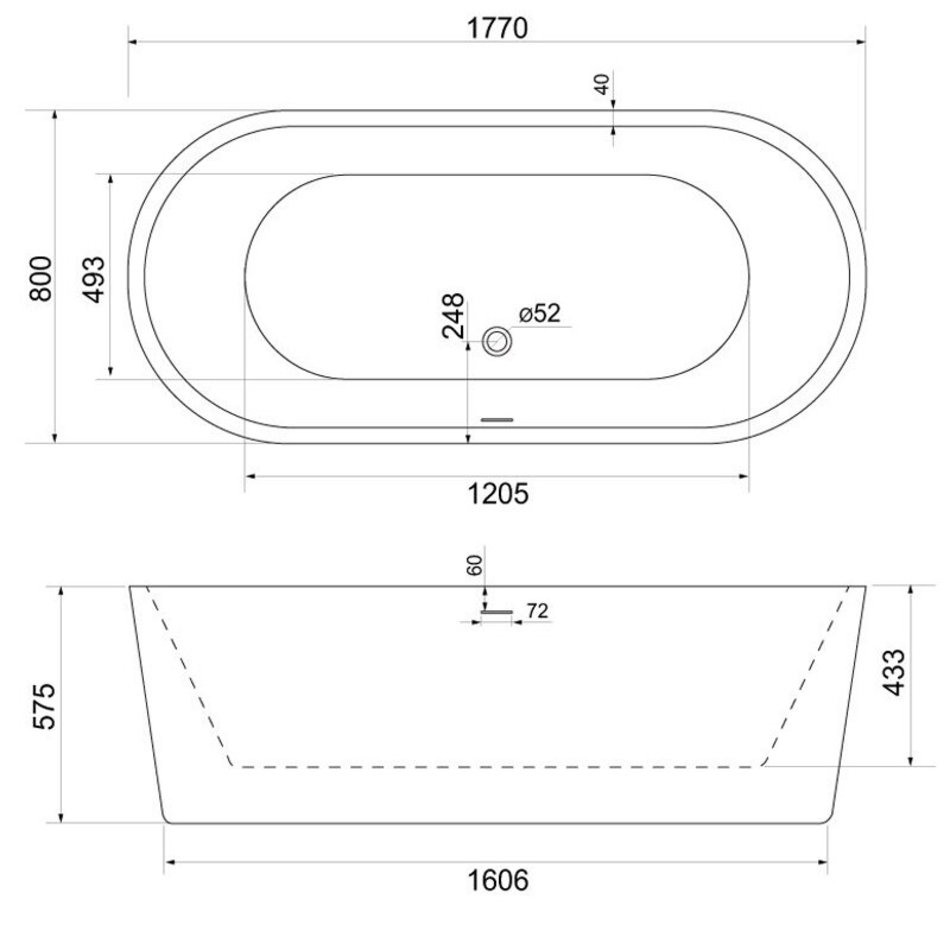Акриловая ванна BelBagno 177 х 80 х 57,5 см, BB109-177-80