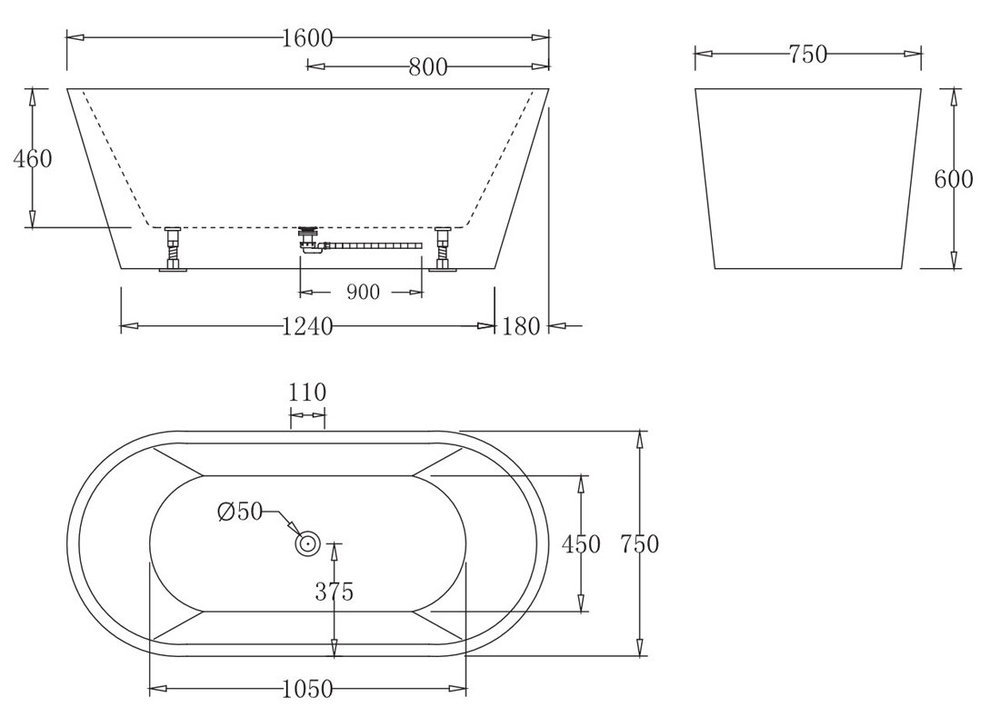 Акриловая ванна BelBagno BB71-1600-W0