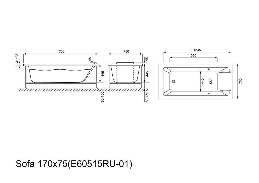 Акриловая ванна Jacob Delafon Sofa 170 x 75 см, белая, E60515RU-01