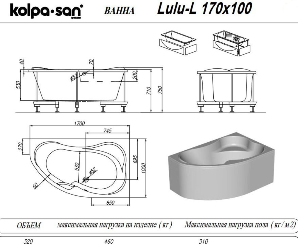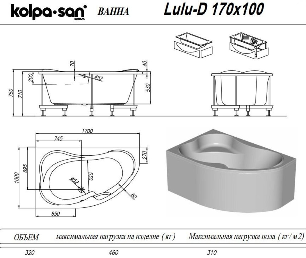Глубокая и вместительная ванна Kolpa San Lulu представлена в лево- и правостороннем исполнении. Модель имеет сиденье и два удобных подголовника. Широкие борта позволят разместить многочисленные средства ухода взрослым и игрушки детям.