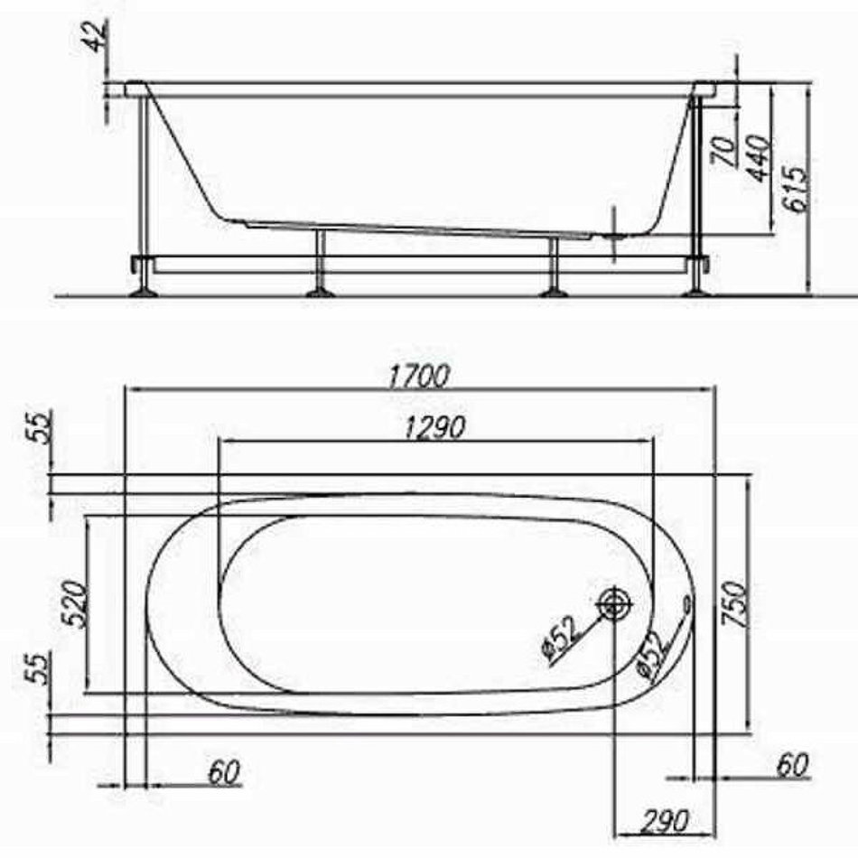 Акриловая ванна Kolpa-San Quat Tamia 567290 170 х 75 см, белый