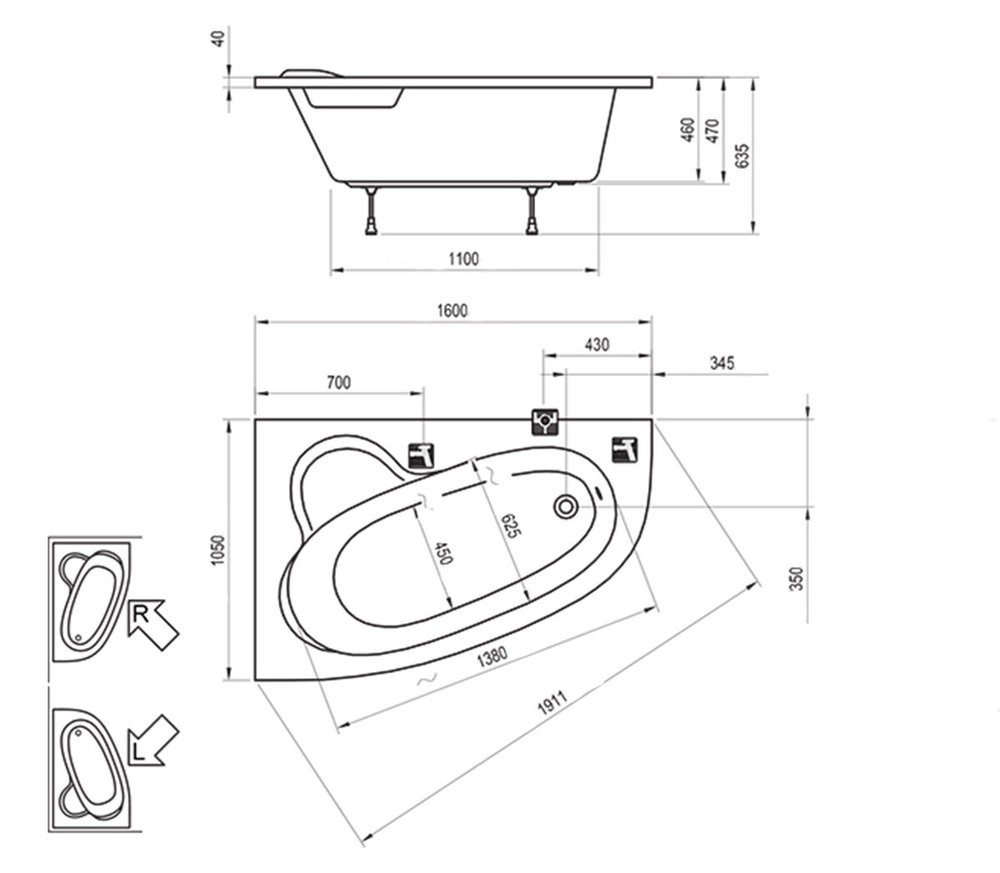 Акриловая ванна Ravak Asymmetric 160 х 105 см, левая/правая, белая, C461000000/C471000000