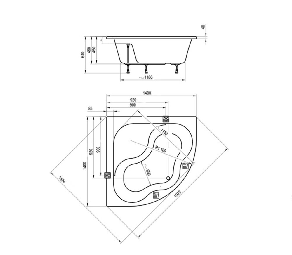 Комплектация: в стоимость входит только ванна, всё остальное, в т.ч. слив-перелив, опора, боковые панели, приобретается отдельно.