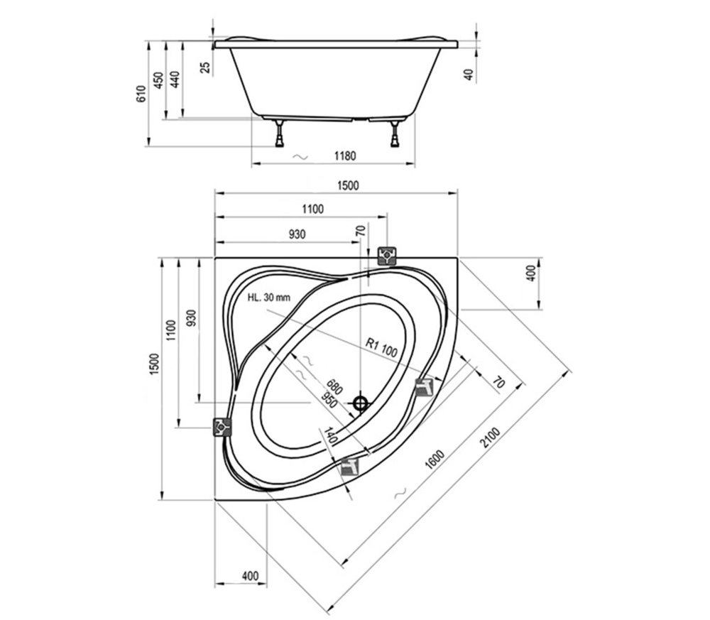 Акриловая ванна Ravak New Day C661000000 150 x 150 см, белая