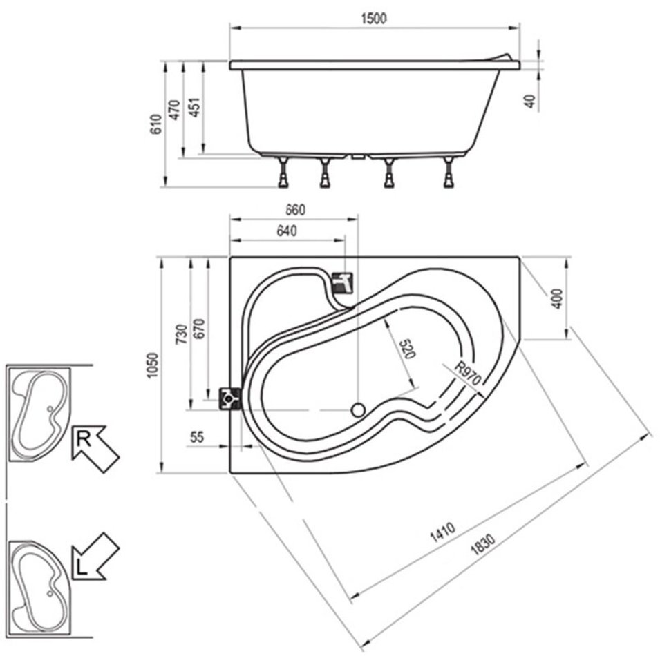 Акриловая ванна Ravak Rosa I 150 х 105 см левая/правая, белая, CJ01000000 R/CK01000000 L