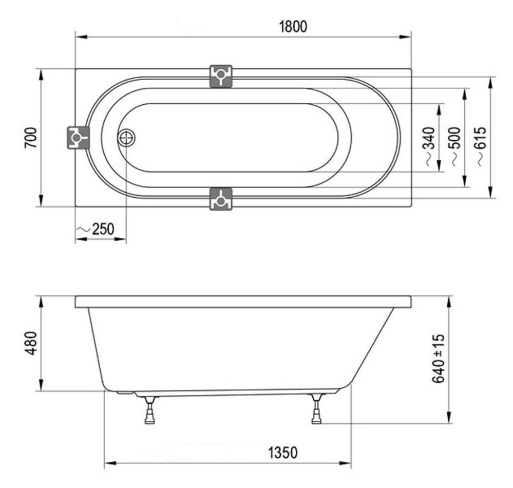 Комплектация: в стоимость входит только ванна, всё остальное, в т.ч. слив-перелив, опора, боковые панели, приобретается отдельно.