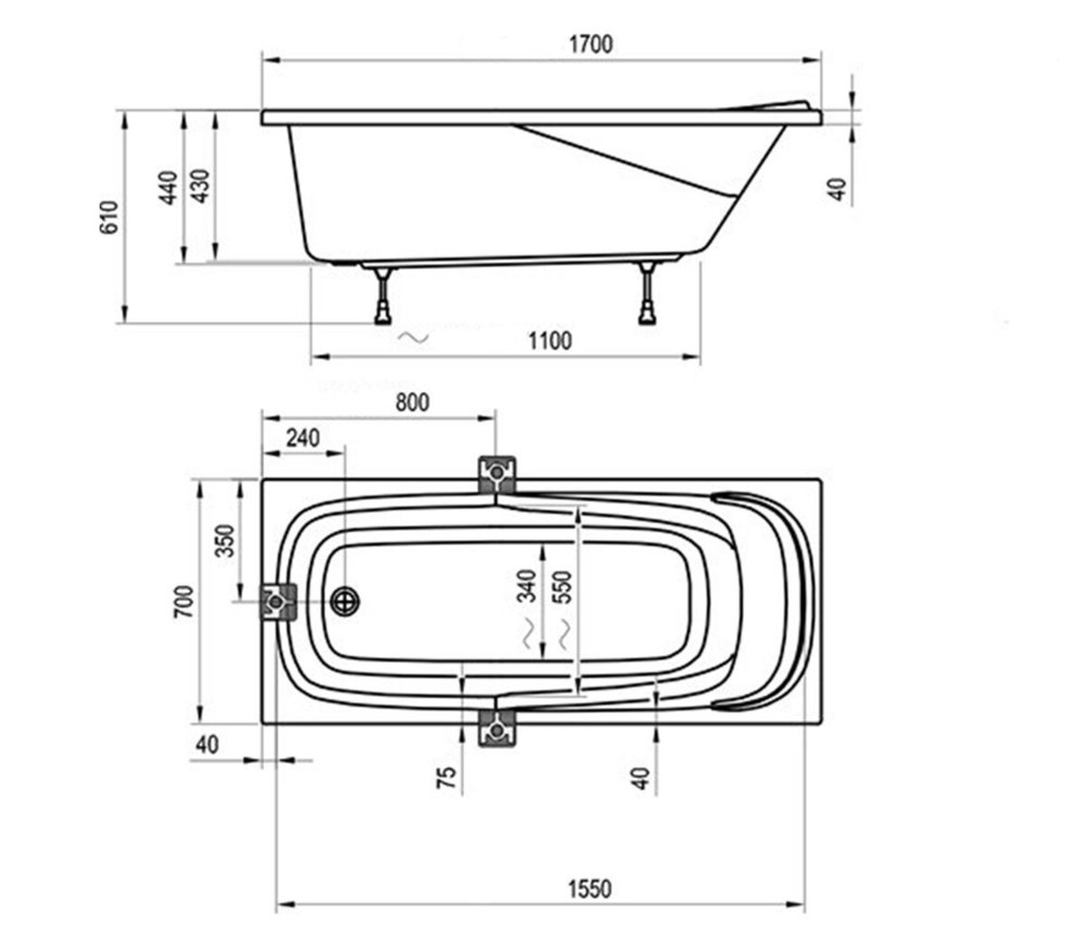 Главная особенность ванны Vanda II – эргономичная конструкция. Пологая спинка обеспечивает удобное положение тела, встроенные подлокотники дают опору рукам: во время купания можно комфортно читать или просматривать сообщения на смартфоне. Передняя панель с выемкой облегчает доступ к ванне снаружи.