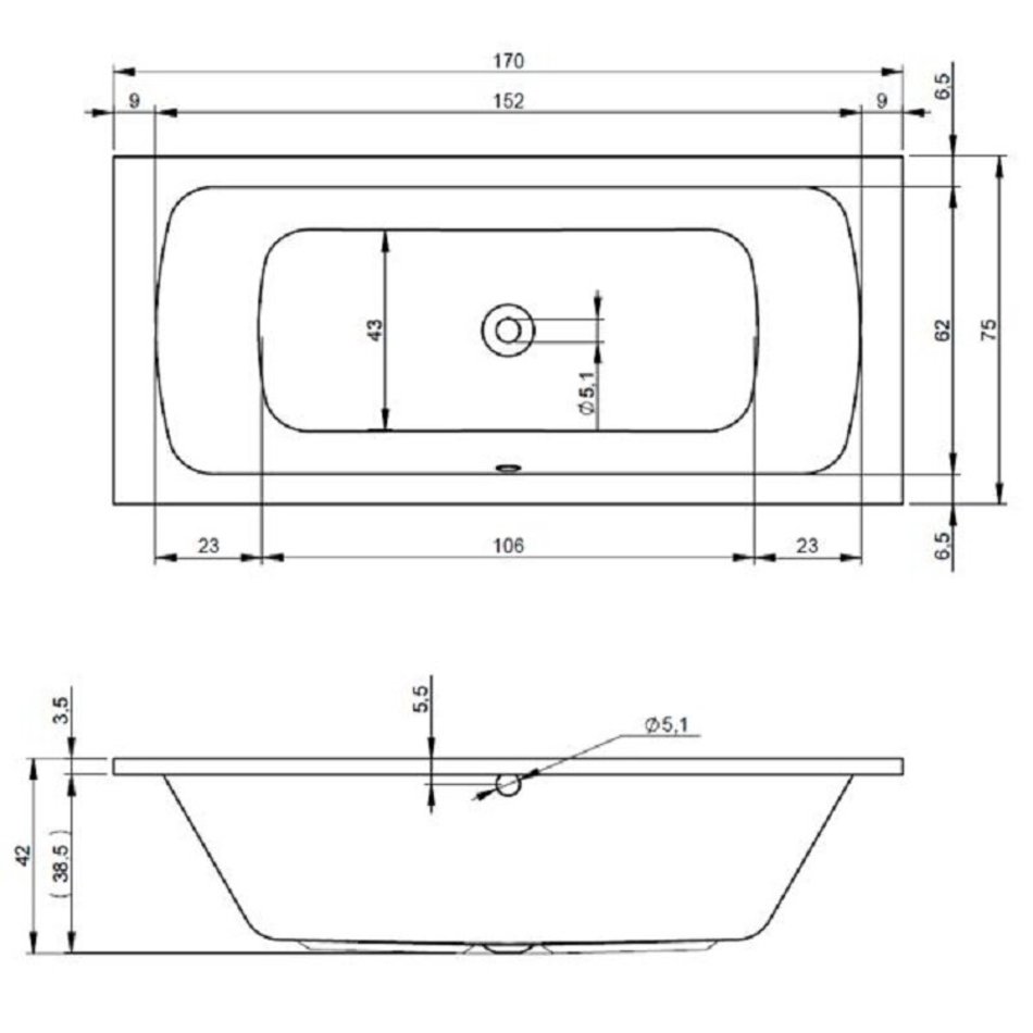 Акриловая ванна Riho Bari B047001005 S 170 x 75 см