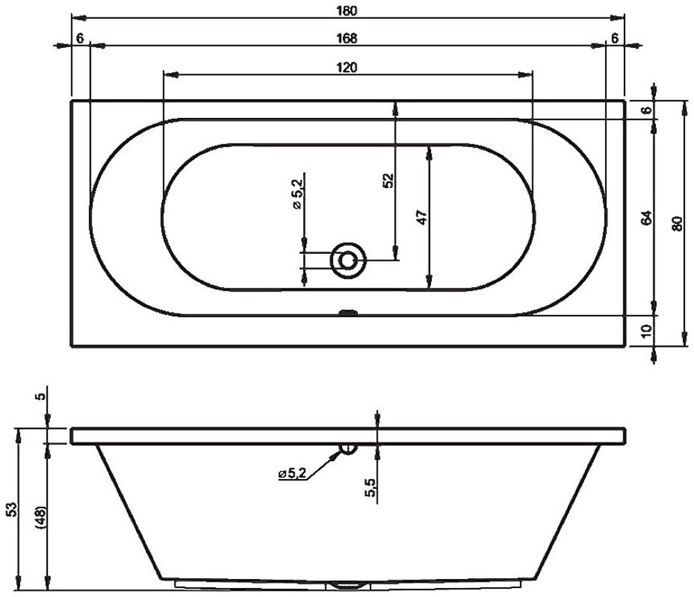 Акриловая ванна Riho Carolina 180 x 80 см, цвет белый, B056001005