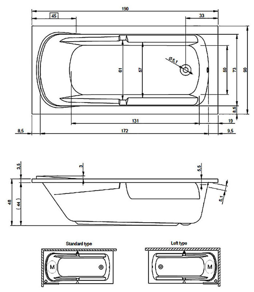 Акриловая ванна Riho Future 190 XL, 190 x 90 см, цвет белый, B075001005