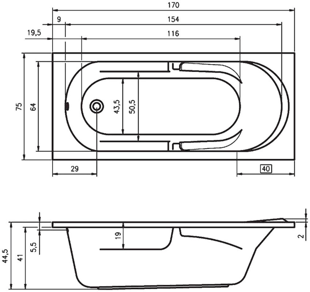 Акриловая ванна Riho Future B073001005 170 x 75 см, цвет белый