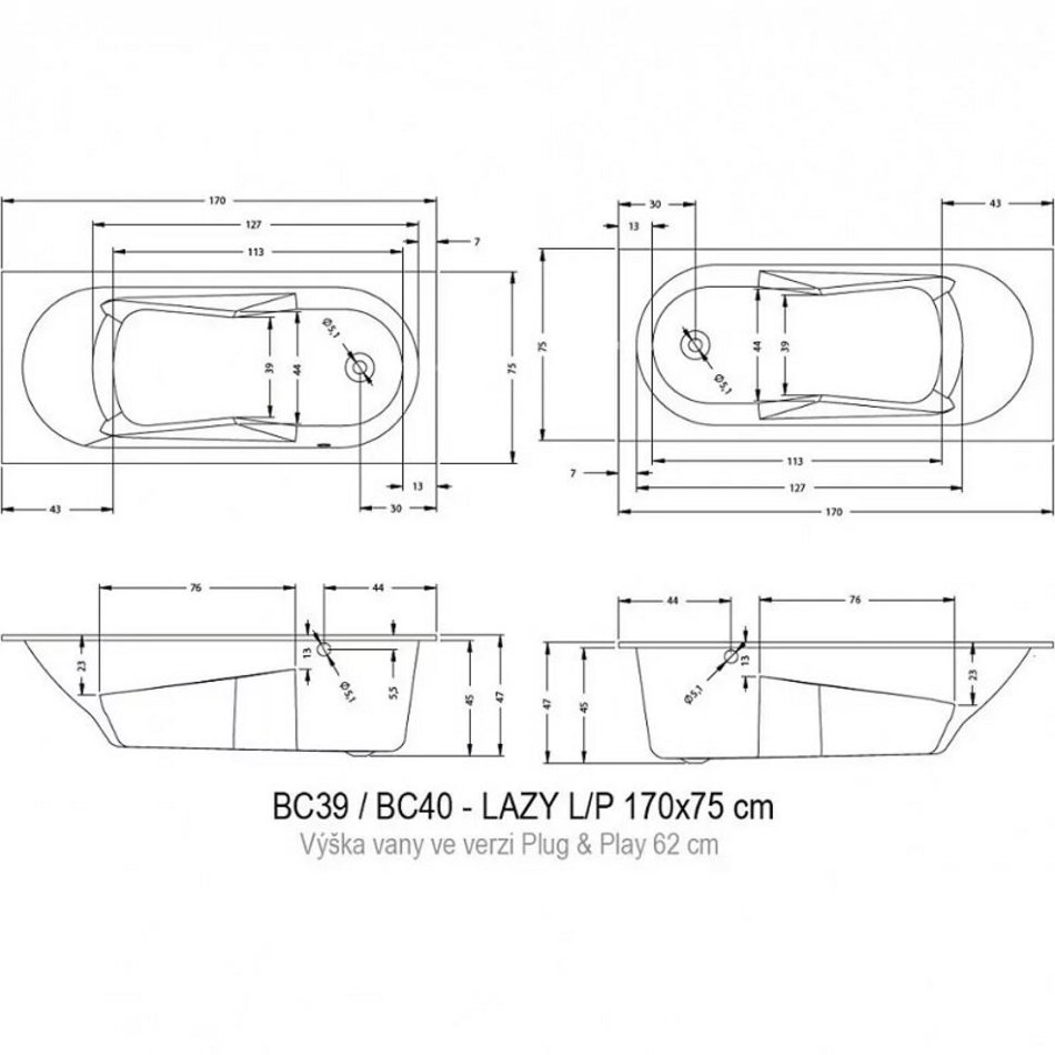Акриловая ванна Riho Lazy Plug & Play B079005005/B080005005, 170 x 75 см, цвет белый, левая/правая