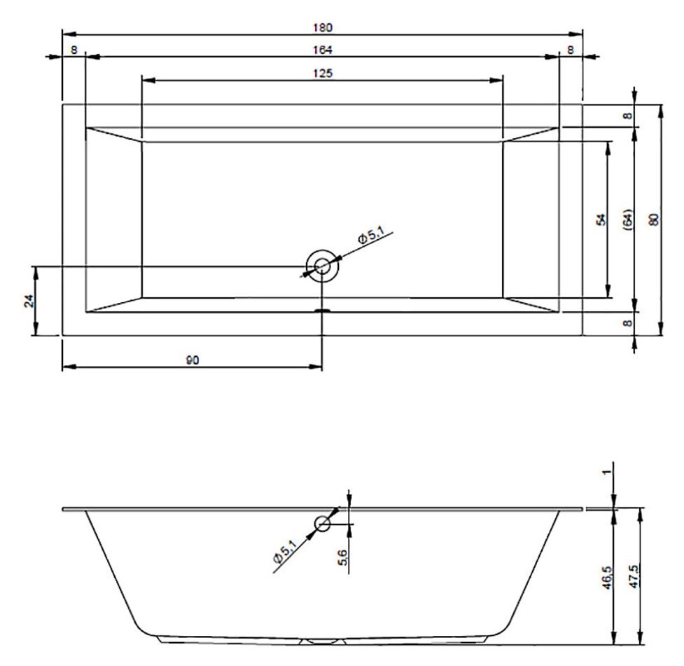 Акриловая ванна Riho Lugo B133001005 180 x 80 см, цвет белый