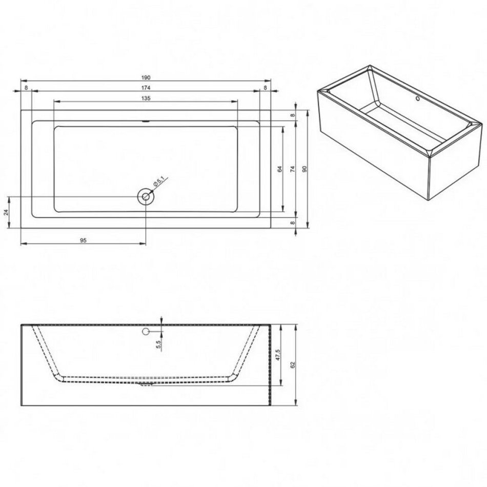 Прямоугольная ванна RIHO Lugo 190x90 Plug & Play, из глянцевого белого акрила с прямыми симметричными спинками, гладкой внутренней формой и центральным сливом, представляет собой полностью собранную на заводе конструкцию. Длинная и короткая стороны ванны оснащены сразу отлитыми панелями, изготовленными из того же акрилового материала, что и ванна. Всё идеально, никаких швов! На ванне уже установлены опоры, остаётся только подключить ванну к канализации, по принципу "Подключи и пользуйся!" Установка значительно упрощается и вы экономите на плиточных работах. Панели и ванна представляют собой монолитную конструкцию, при этом ванна ещё лучше держит тепло. Гидромассажные системы на ванны Plug & Play не устанавливаются.