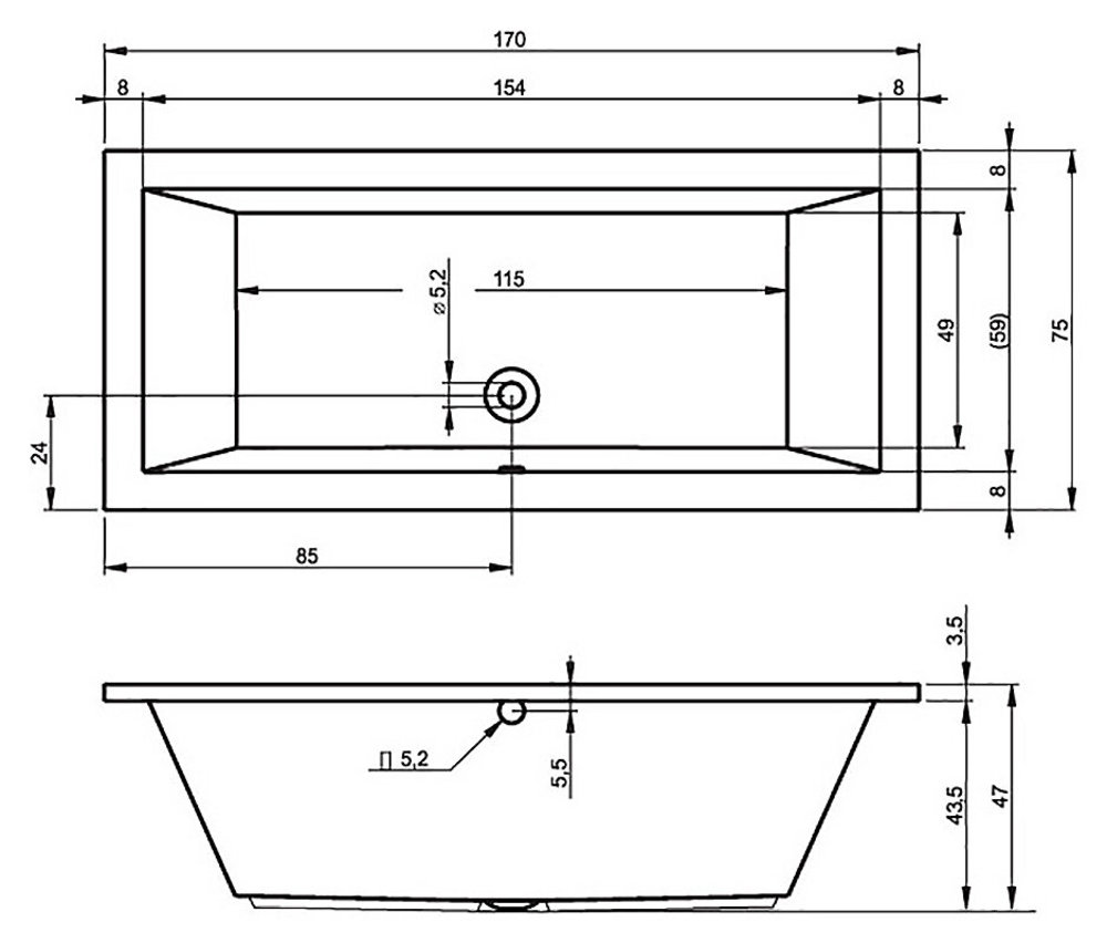 Акриловая ванна Riho Lusso 170 x 75 см, без гидромассажа, цвет белый, BA1800500000000