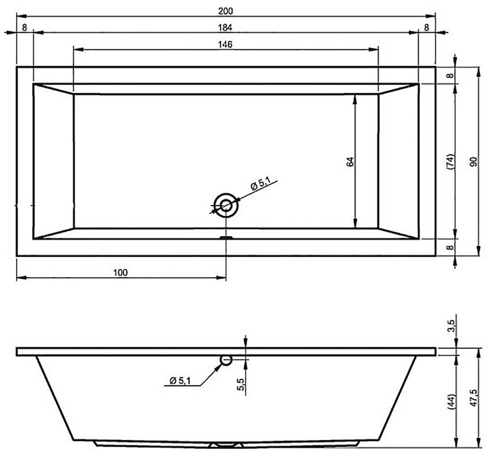 Акриловая ванна Riho Lusso 200 x 90 см, цвет белый, (BA6000500000000(B016001005))