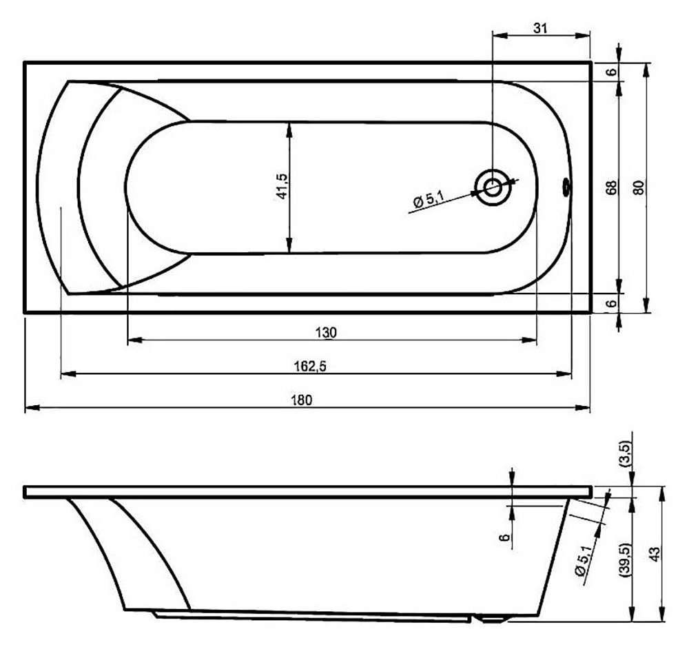 - Размер ванны: 1800*800*440 мм