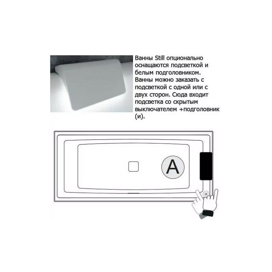 Акриловая ванна Riho Still Square B099033005/B099034005, со встроенной подсветкой и подголовником, с заполнением через перелив, 180 x 80 см, цвет белый