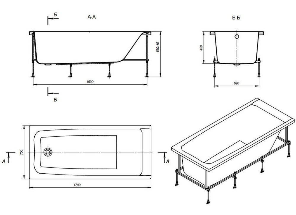 Акриловая ванна Roca Elba 7.2485.0.700.0 170 х 75 см, белая