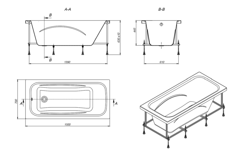Акриловая ванна Roca Line Z.RU93.0.298.2 150 x 70 см
