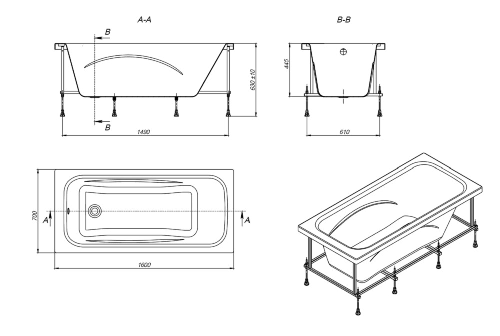 Акриловая ванна Roca Line Z.RU93.0.298.5 160 х 70 см