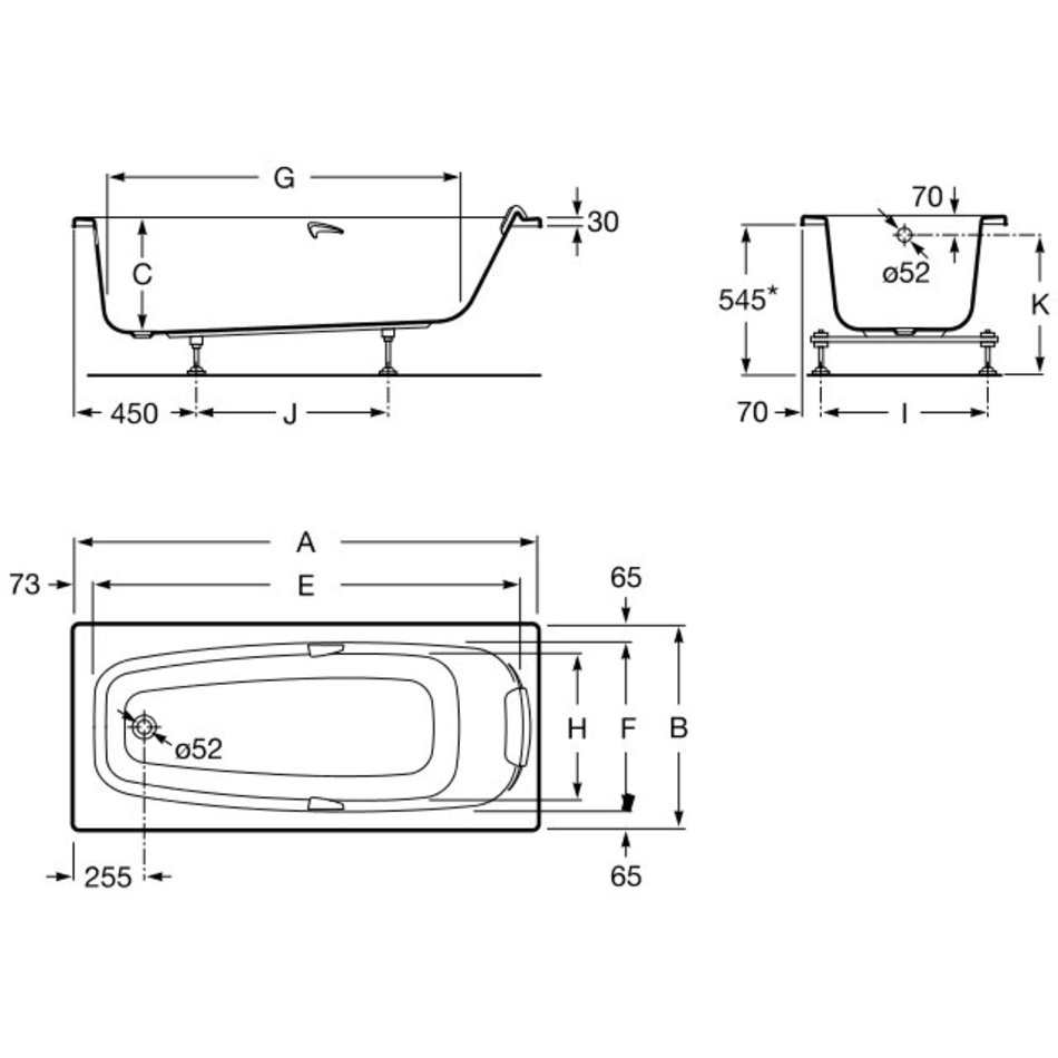 Акриловая ванна Roca Sureste 150 x 70 см, ZRU9302778