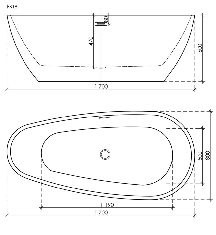 Ванна Avocado акриловая отдельностоящая; Цвет белый; Размер 1700*800*600мм; слив-перелив донный клапан "Click-Clack" в комплекте, хром