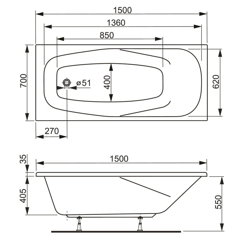Акриловая ванна Vagnerplast Aronia 150 x 70 см