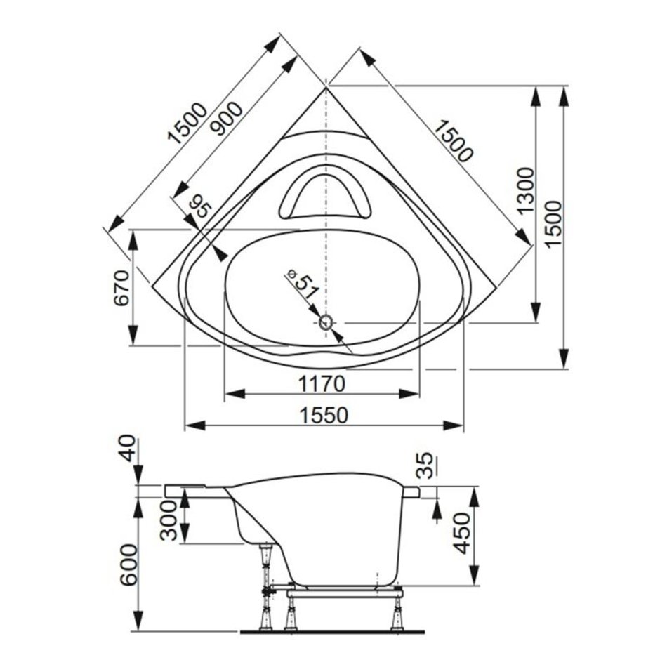 Акриловая ванна VAGNERPLAST ATHENA 150