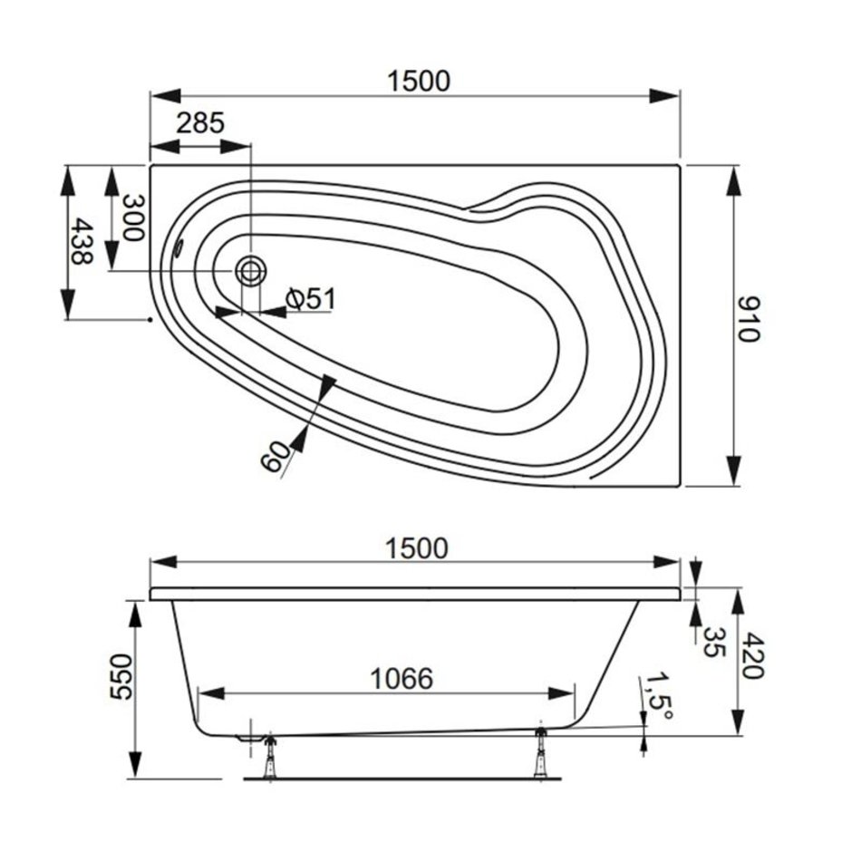 Акриловая ванна Vagnerplast Avona 150 x 90 см, левая/правая (VPBA159AVO3LX-04/VPBA159AVO3PX-04)