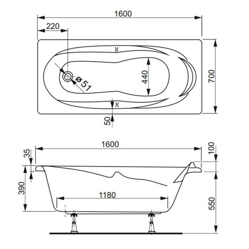 Акриловая ванна Vagnerplast Kleopatra 160 x 70 см
