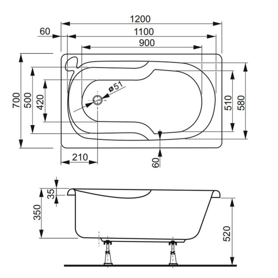 Акриловая ванна Vagnerplast Nike 120 x 70 см