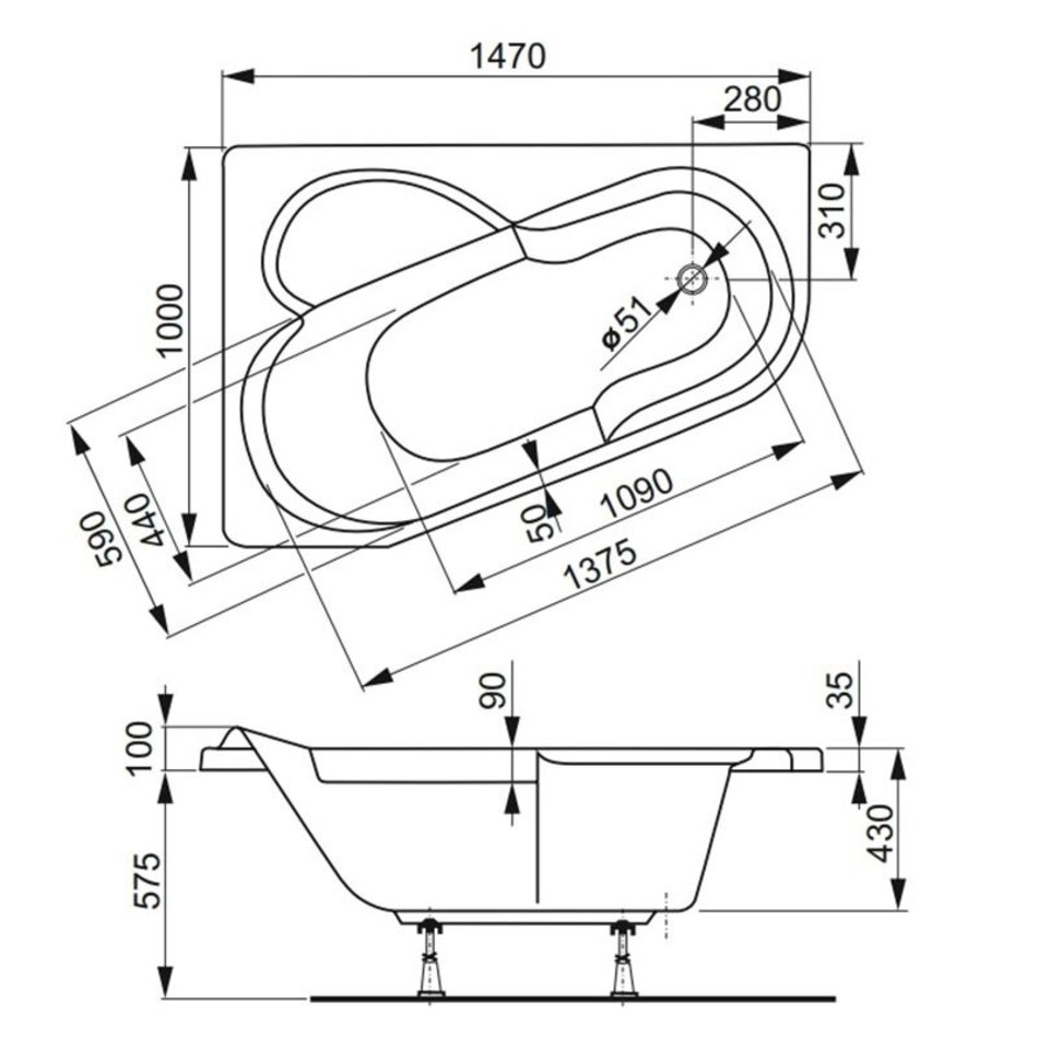 Акриловая ванна VAGNERPLAST SELENA 147 левая/правая