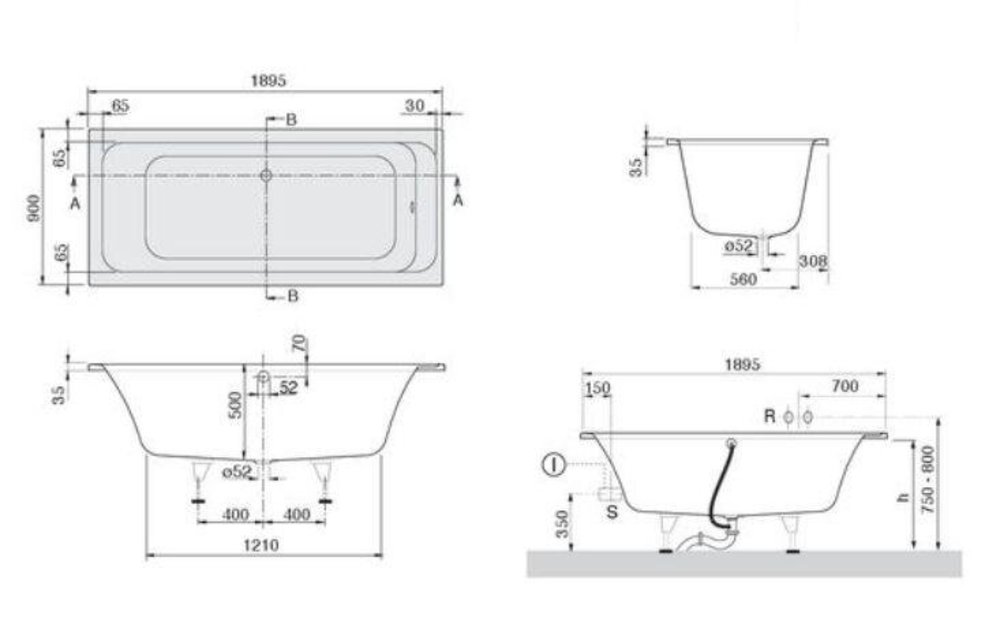 Акриловая ванна Villeroy&Boch Omnia Architectura 190 x 90 см UBA199ARA2V-01