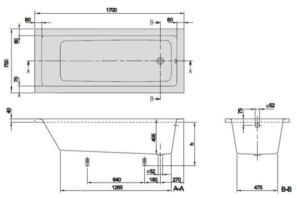 Акриловая ванна Villeroy&Boch Targa Plus Solo 170 х 75 см, UBA171NES2V01