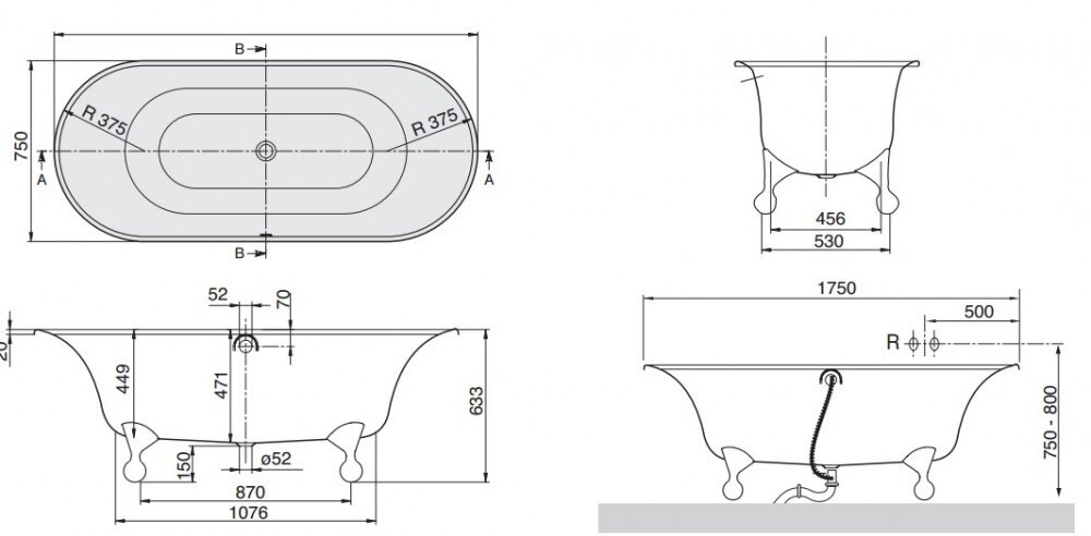 Квариловая ванна Villeroy&Boch Ceta 175 x 75 см UBQ175CEA7B0V-01 ножки черные