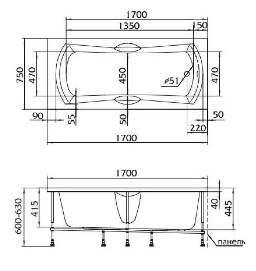 Ванна акриловая 1Marka Agora 01аго1775 170 x 75 см, белая