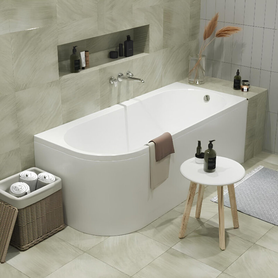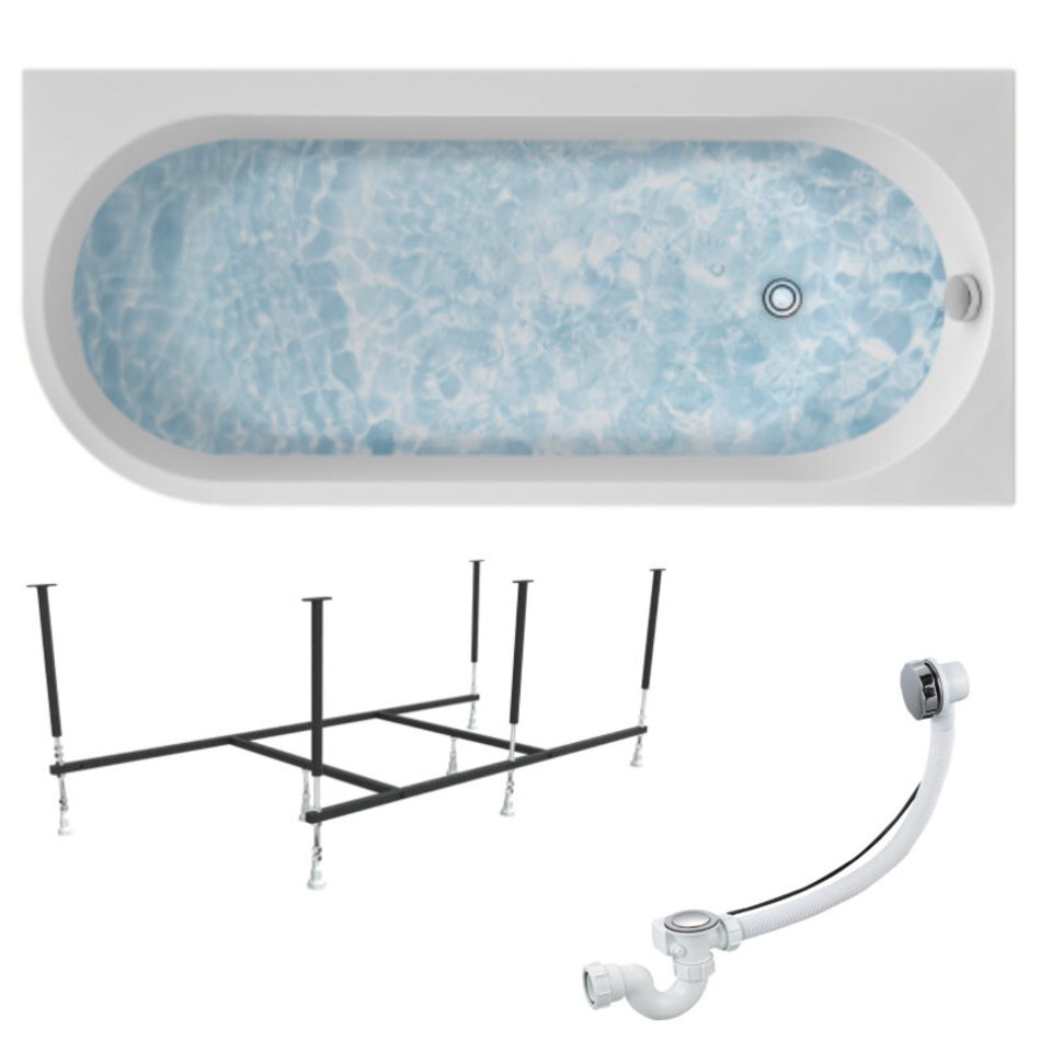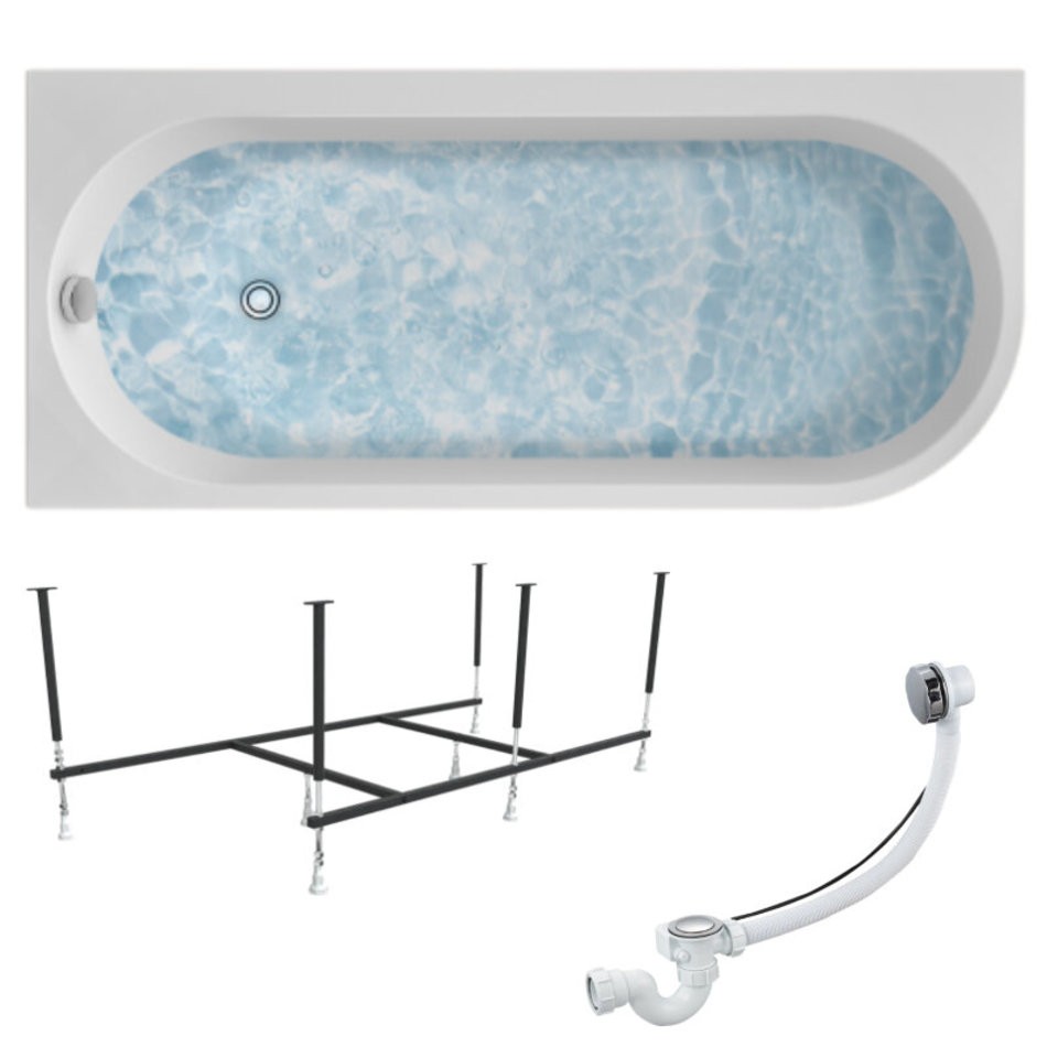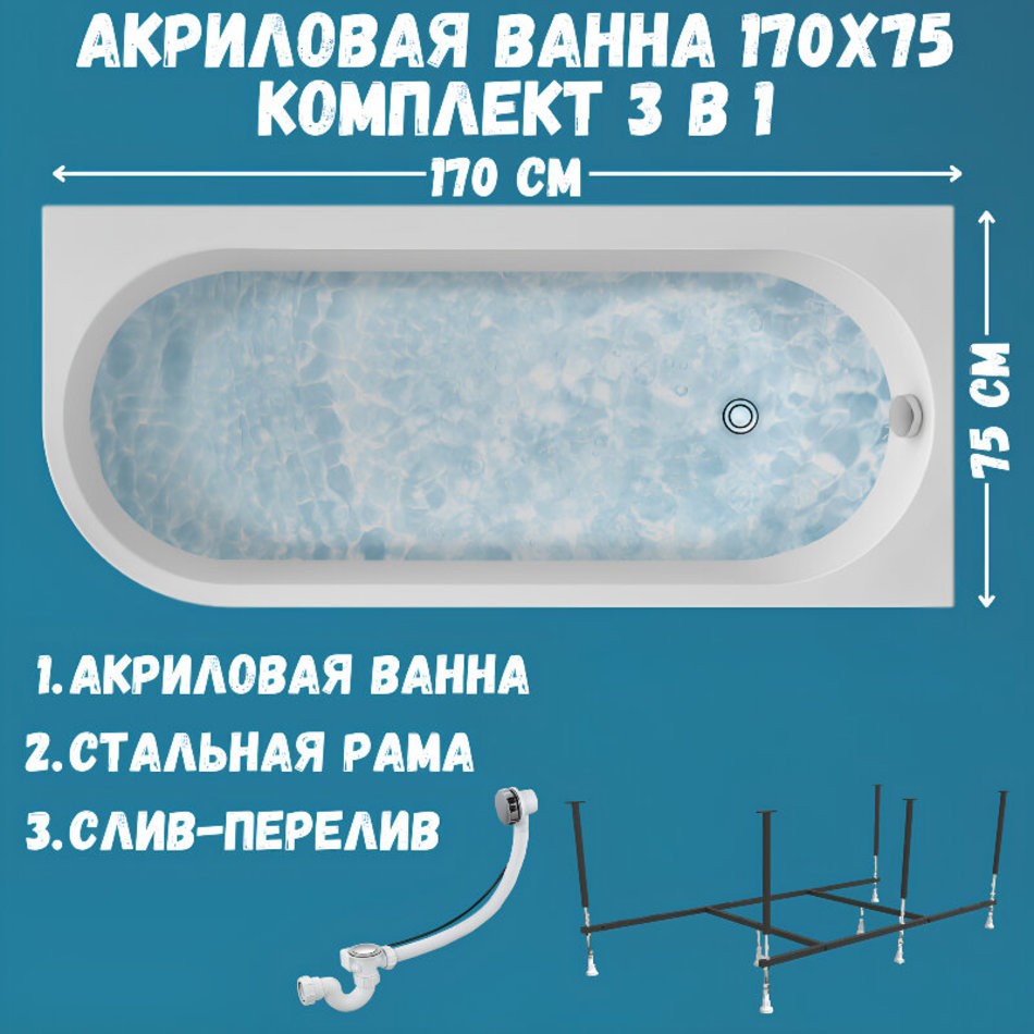 Ванна акриловая 170х75 см 1MARKA ALISA MG в наборе 3 в 1: Асимметричная ванна, усиленный металлический каркас, слив-перелив хром - изысканный дизайн и максимальный комфорт