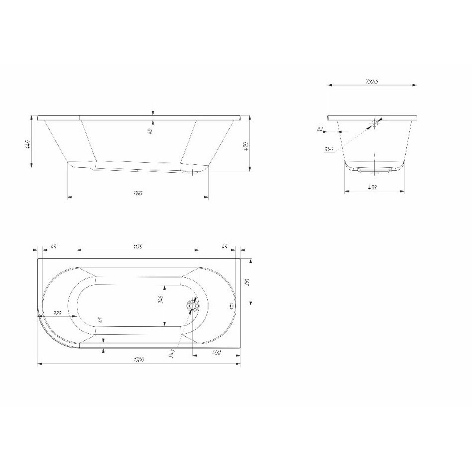 Ванна акриловая 1MarKa Alisa 01али1775лкс2+/01али1775пкс2+, 170 x 75 см, левая/правая, цвет белый