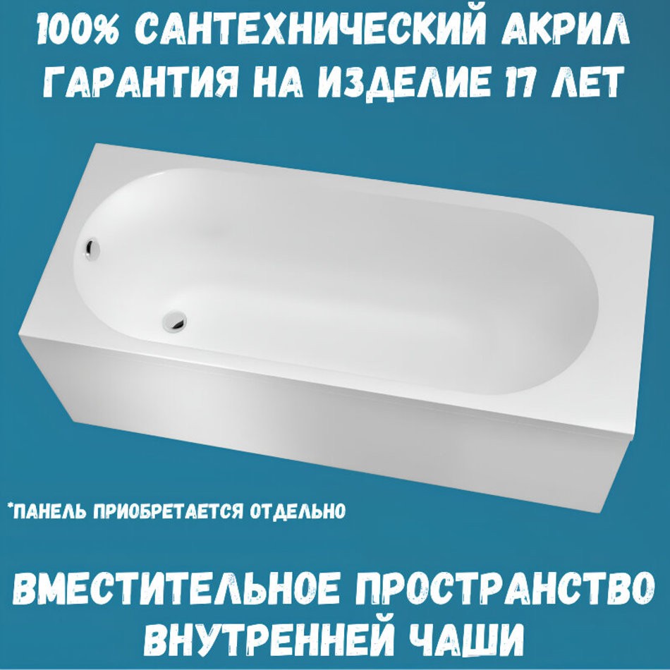 Усиленная конструкция ванны гарантирует безопасность при принятии водных процедур. Материал акрил обеспечивает долговечность и качество ванны.